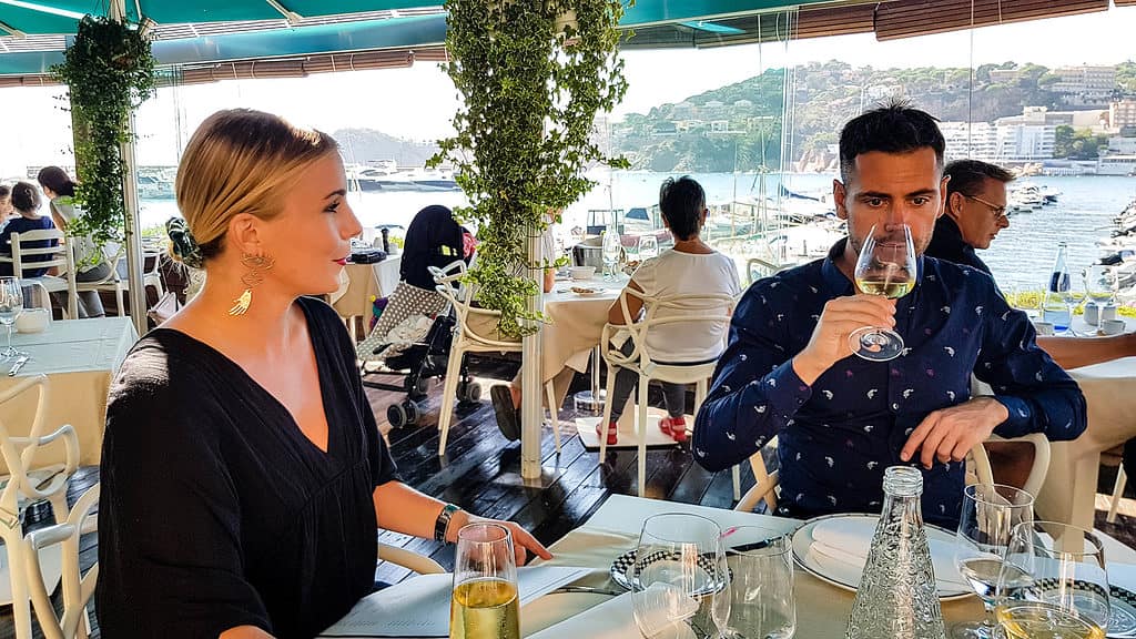 We topped off our foodie trip with a luxurious seafood lunch at Sa Marinada in the harbour of Sant Feliu de GuÃxols. Sa Marinada is not ideal for budget travellers unless you’re out celebrating a special occasion and don’t mind splurging a bit. It’s located right next to the water on a large deck with exclusive white linen napkins and big, clear tanks for the live lobsters, oysters and other delicacies. Greg and I got our fancy pants on and treated ourselves to some oysters, Cava and a number of wonderfully made seafood dishes.