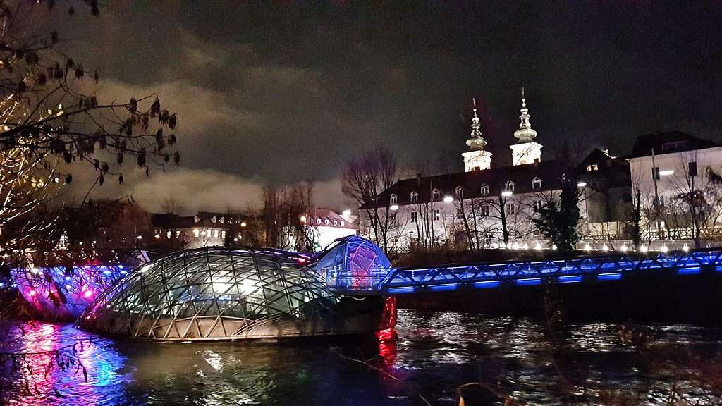 The Murinsel was created as a project during the time Graz was named the Capital of Culture back in 2003. Today, the island links the two sides of the city and is home to a beautiful café and amphitheater.