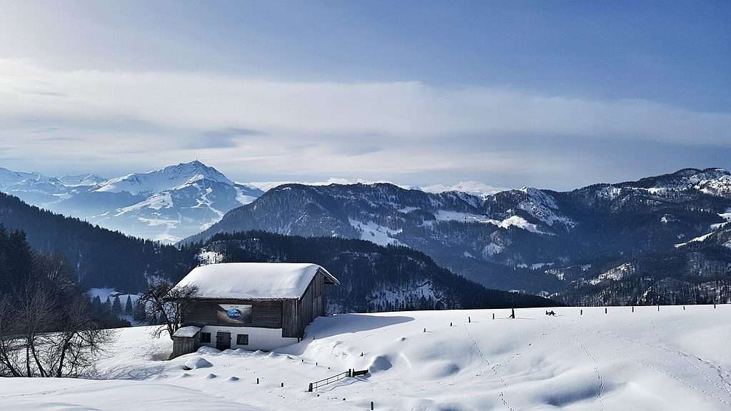 Another popular way to see the St. Johann in Tirol area is snowshoeing. It’s an increasingly popular hobby all around Austria, mainly because you can cut your own path through the snow-covered mountains. I recommend going with a guide, not only for safety, but as they’ll take you along the best routes and explain some of the nature and history to the area. It’s also important to behave correctly in the winter terrain, and look after the natural surroundings – your guide will help you to do that. We snowshoed to an excellent view point over the Wilder Kaiser mountain, which means Wild Emperor in English. It’s a beautiful and famous landmark, and the walk to it was breath-taking.